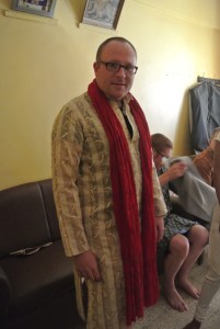 The wedding party gathered that morning at the Ramada Hotel and then headed on a convoy of rickshaws to Neem’s house for the exciting part…choosing our Sarees and jewellery and for the men – the Kurtas.