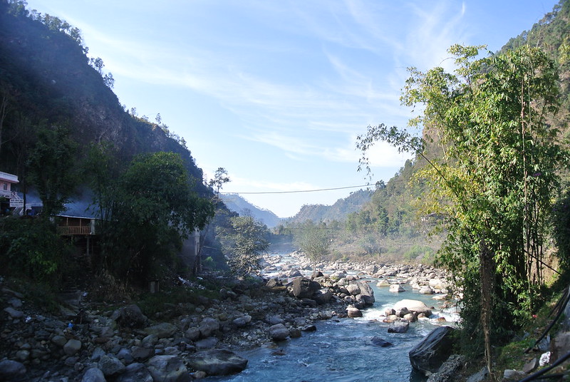 The trek begun gently with a stroll through local villages. Around 45 mins later we reached the TIMS checkpoint at the village of Birethanti. TIMS stands for the Trekkers Information Management System and is the central register of all climbers and trekkers amongst any of Nepal’s mountain ranges. After being registered to trek we were off, the initial gentle stroll had been the warm up for the hills and peaks to come. After a couple of hours of high inclines and rope bridge crossings as we traced the flow of the Modi river we had reached Green View, our lunch stop. A plate of Dal bhat- rice and lentils had never tasted so good.