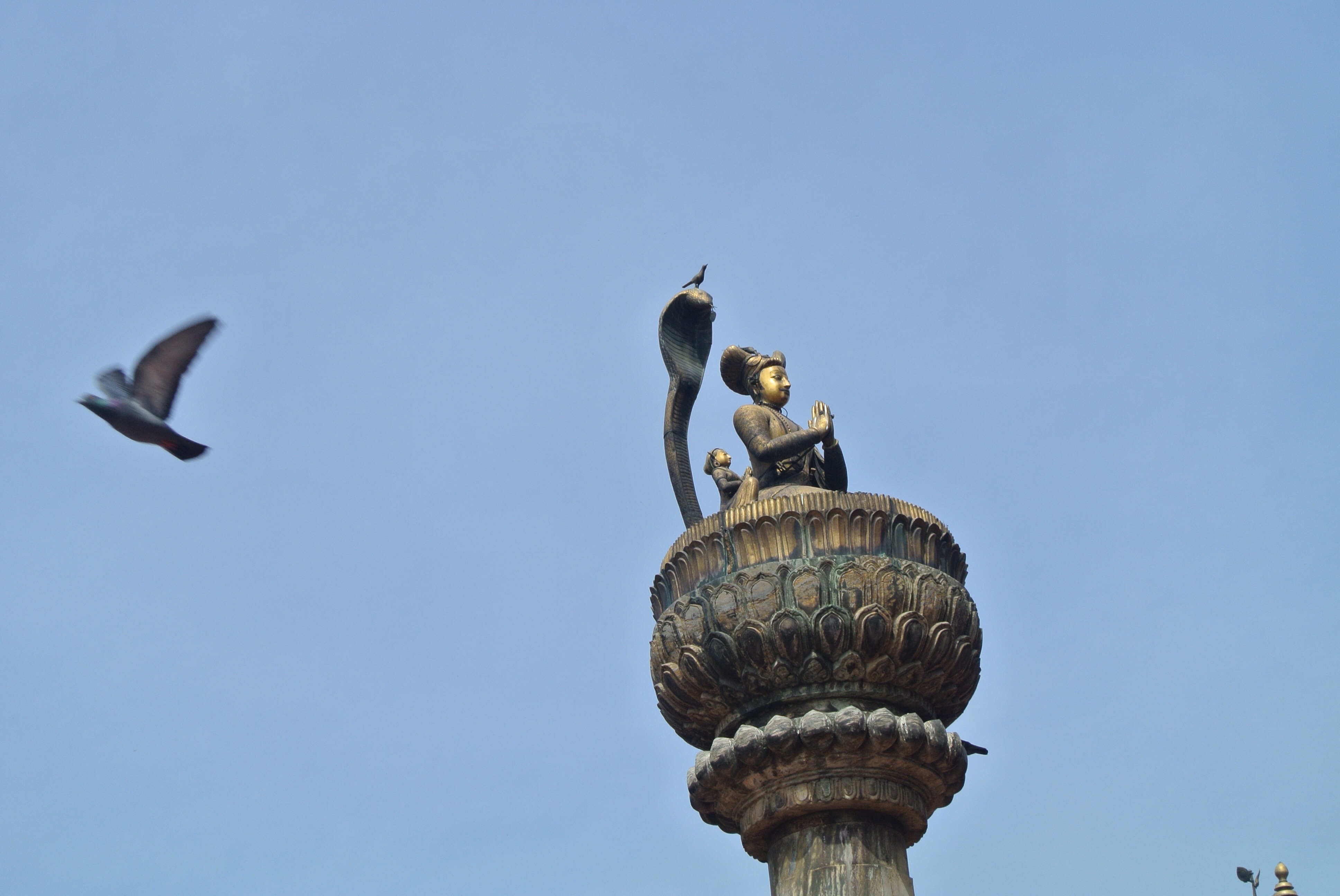 There was another statue, atop the King Yoganarendra Malla column, with a metal bird on a cobra. Legend has it that as long as the bird remains the King’s descendants would remain in power.