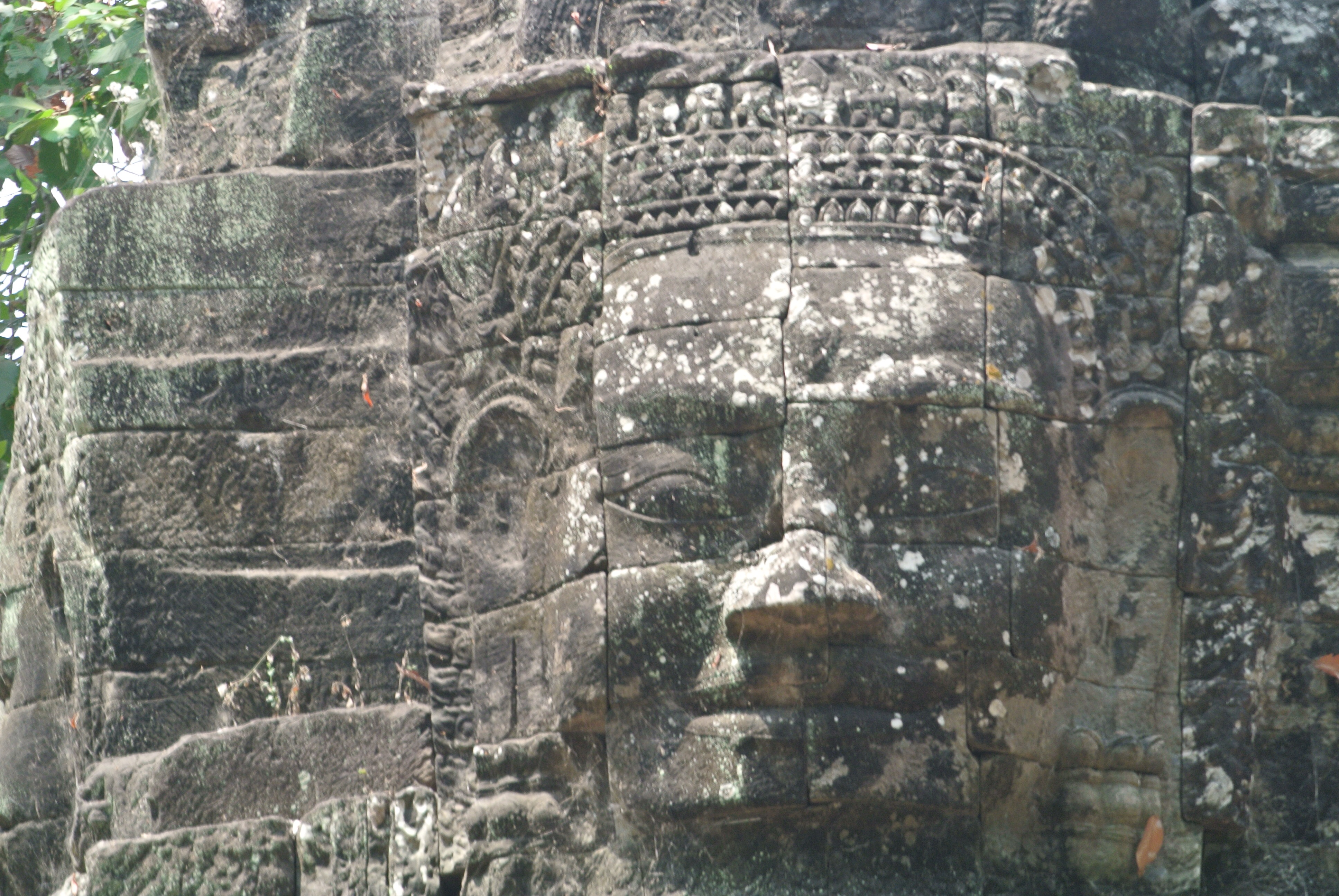 The temple itself is situated in the middle of a jungle setting and is surrounded by a large wall with four gates. Atop each gate are the face statues seen more prominently at Bayon. The temple is reached by a causeway that is flanked by a depiction of the Churning of the Ocean of Milk (Tug of War) ( http://en.wikipedia.org/wiki/Samudra_manthan) on each side.
