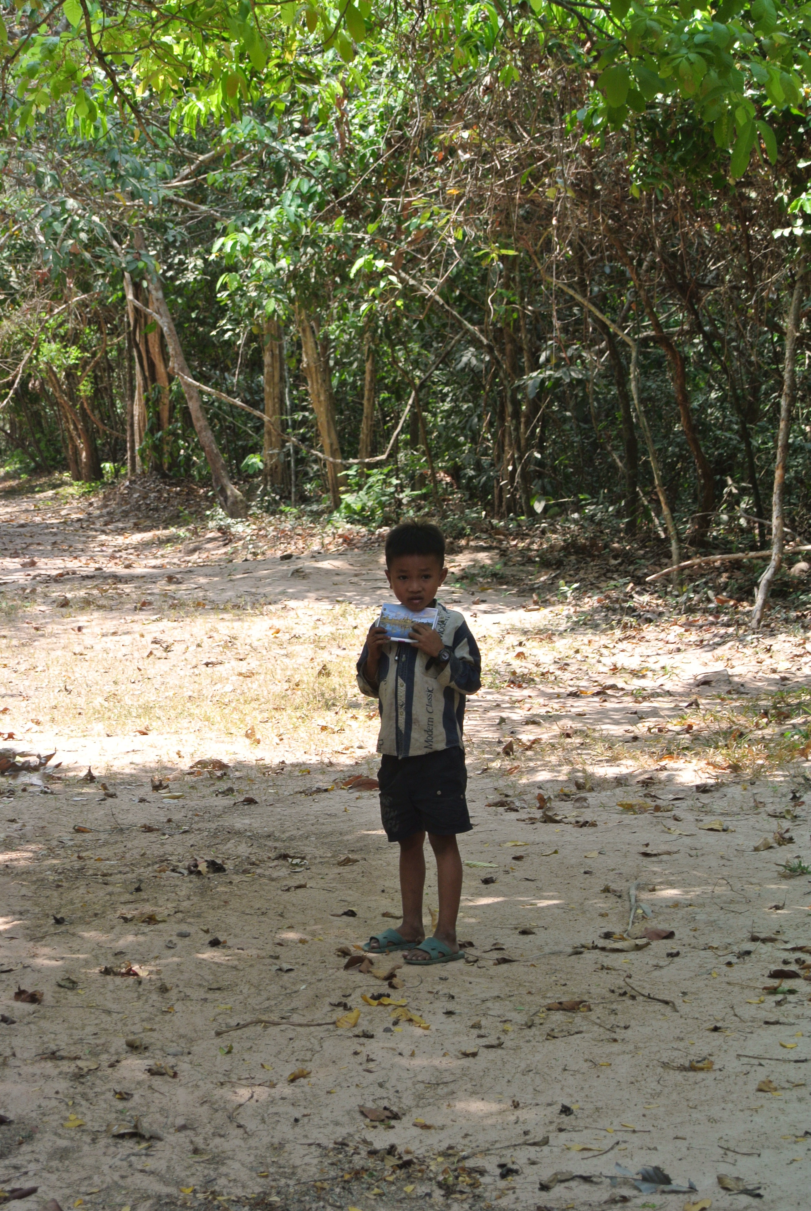 But if you remember from earlier, John had bought postcards at Ta Keo! Eventually fed up, John produced them, waved them and sang to the boy…