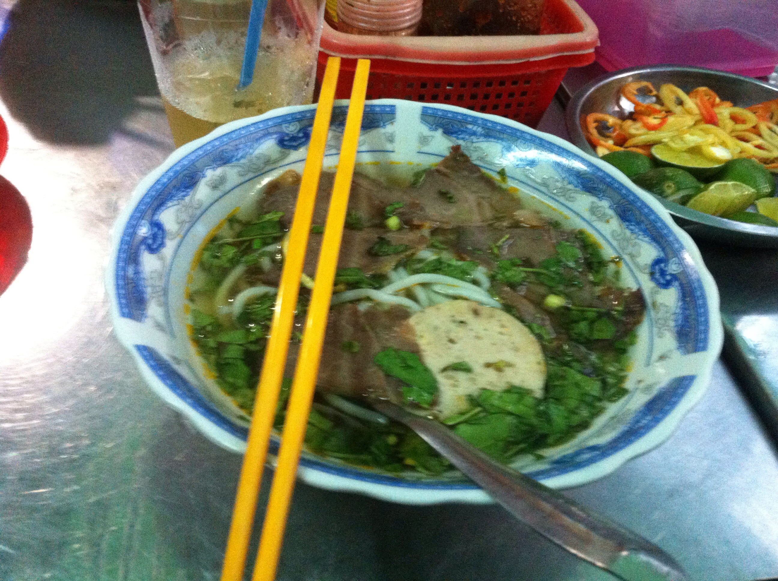 Soon we were enjoying beef rice noodle soup- yum. This was meant to be a gentle introduction to what was to follow… But John had to add spicy chilli to his soup so Karen was worried as John has a dubious history with Chilli.