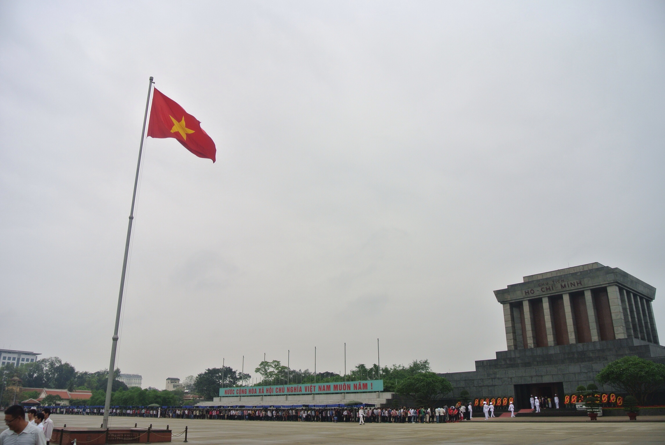 Eventually we entered the Concrete edifice of Ho Chi Minh’s Mausoleum and begun the pilgrimage. It was over before it began. No stopping to give praise, just looking and bowing.