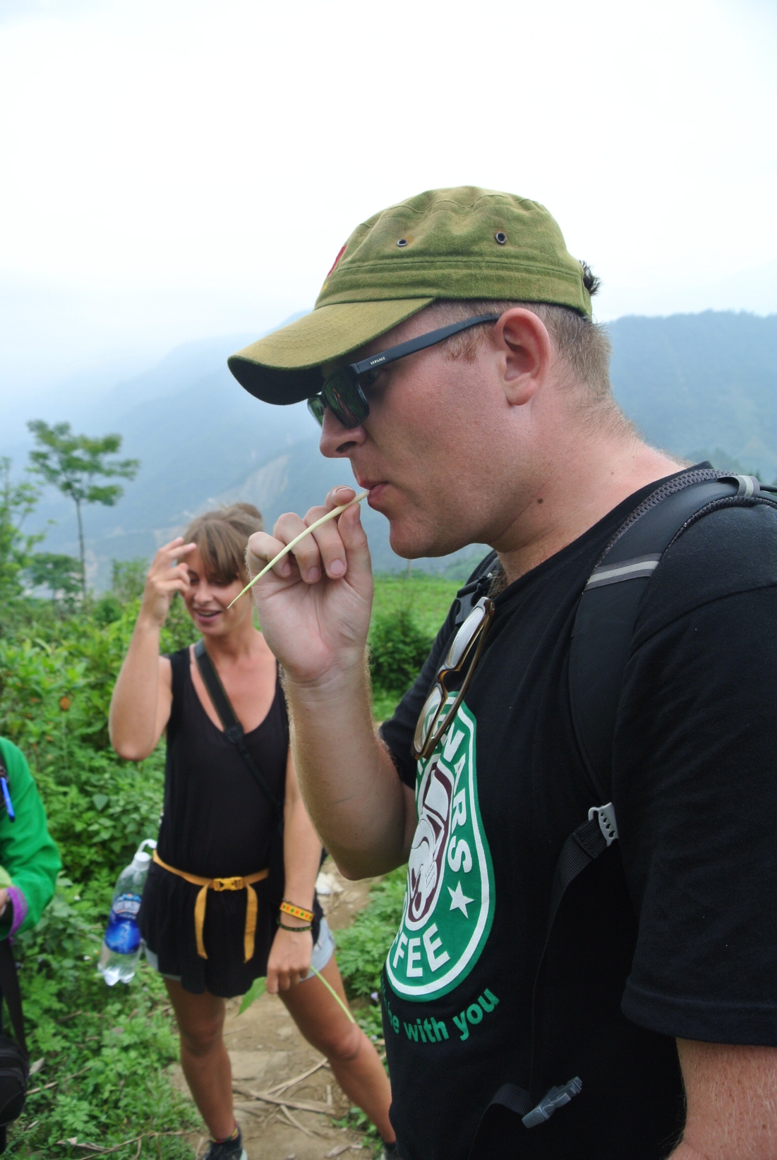 We slowed the pace down with the smaller group and this allowed us to enjoy the scenery even more. More unknown fruit was consumed, leaf sculptures attempted, leaf whistling tried and paddy fields traversed.