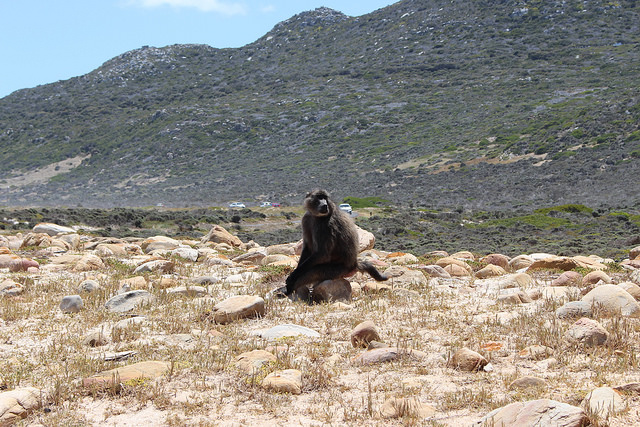 Driving down through the middle of the peninsula on a narrow road surrounding by rocks and flat wilderness on both sides reminded us of an earlier time when we drove through Connemara. What shook us out of that daydream was when we came across some Chacma Baboons. There are hundreds of them in the park and unfortunately their close interactions with tourists have made them a bit aggressive.
