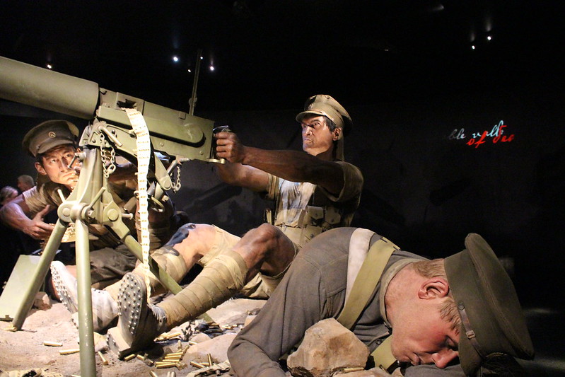 Joining forces with Weta Workshop (Movie Creative Company) they created a narrative around the Gallipoli Campaign during World War 1 through the eyes and experiences of 8 individual New Zealanders. They also created huge lifelike sculptures (2.4 Scale) , 3D Painted maps and models to bring it all to life.