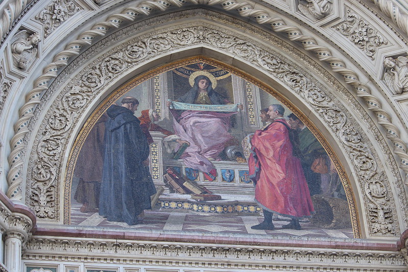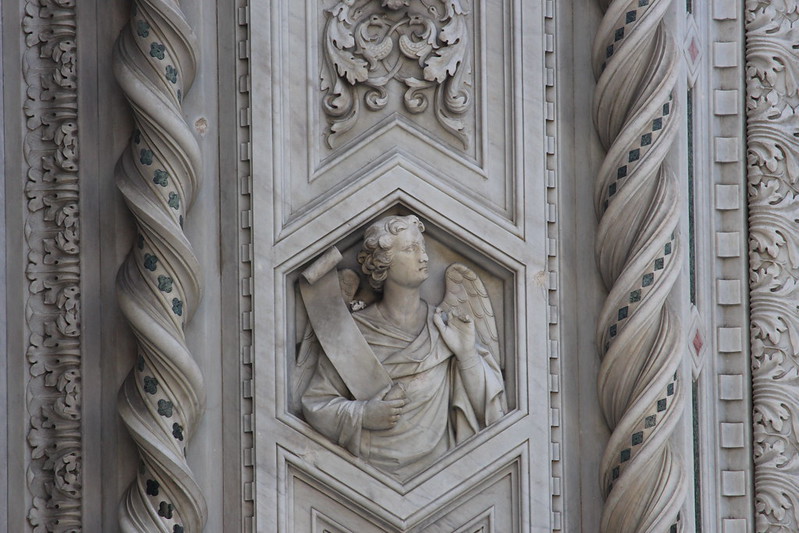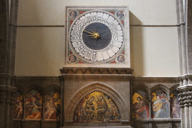 Above the main entrance is an unusually looking clock – the Duomo Clock – one of the only working kinds in the world – it tracks Italian Time, ora Italica, and was painted by Paolo Uccello – who was responsible for some of the stained glass windows as well.