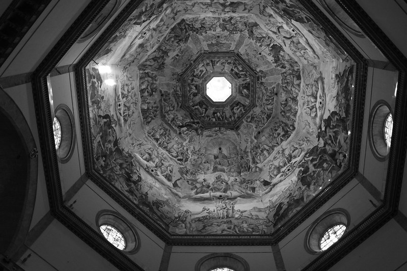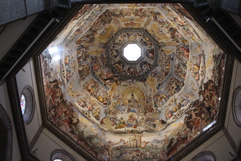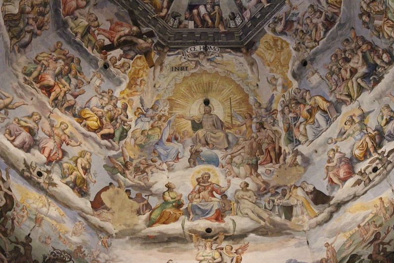 Grand Duke Cosimo I de Medici decided on the theme for the interior of the dome – commissioning 3,600 square metres painting of The Last Judgment taking two painters, Giorgio Vasari and Frederico Zuccari almost 11 years to complete.
