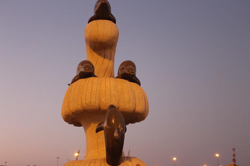 Our first location to take in was the Al Alam Palace, located in the Old Town. We had a driver who drove us there and pointed out the best spots. Everything is connected by road that runs along the shorefront called the Muttrah Corniche and the palace was located behind the walls and towers of the Portuguese settlement.