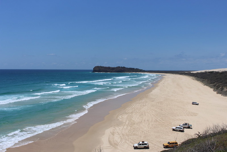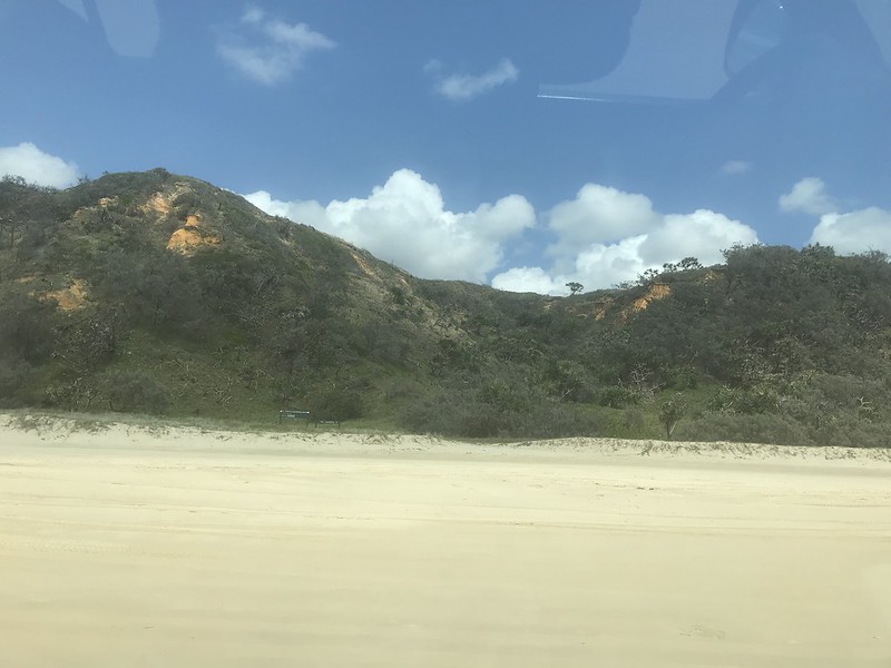 Our first full day on K’gari was here. We loaded up our 4WD and headed onto the beach. Taking a big left turn we headed north – along 75 mile beach. Our destination was to the far north – the swimming hole at Champagne Pools. Soon enough we encountered a veritable convoy of jeeps and 4WDs as most of the best sites are on the beach – Eli Creek, SS Maheo, the Pinnacles, Red Canyon etc.