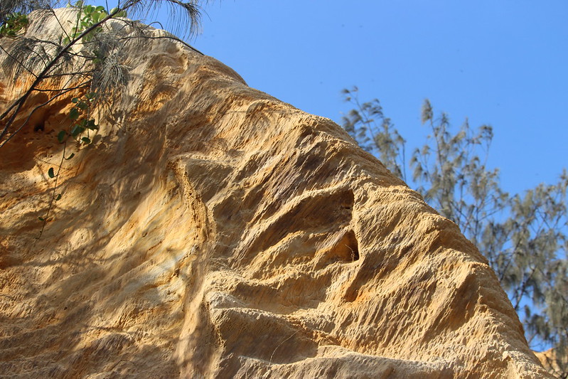 After lunch we made our way back down the beach to Eurong, stopping first at The Pinnacles – a collection of coloured sand cliffs. The various patterns and colours of the sand evoked memories of Maria Island in Tasmania.