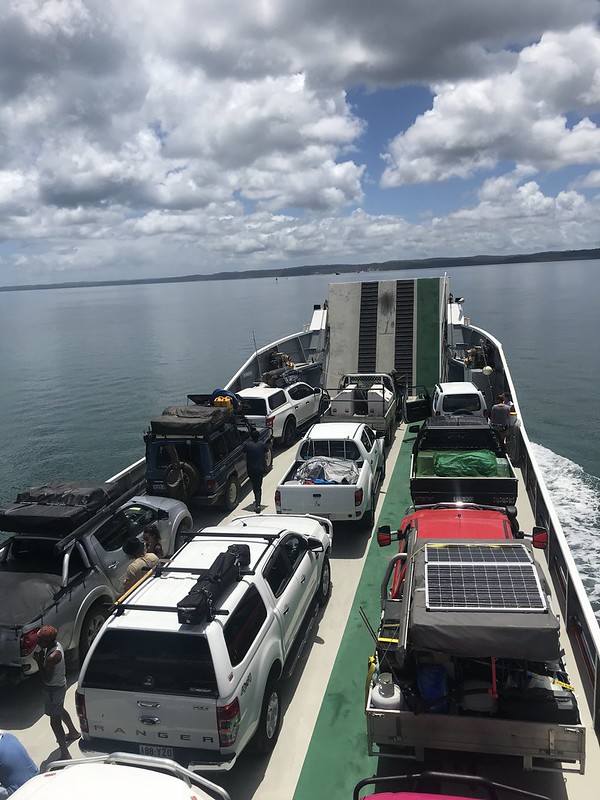 The car ferry is only 50 mins from the mainland to the K’gari – terminating at Wanggoolba Creek Road on the southern third of the island. After driving on we made our way up to the observation deck to take in the views. As we climbed the metal staircase we noticed that someone had driven a very small car onto the boat. Very small by comparison to the rest of the passenger vehicles.