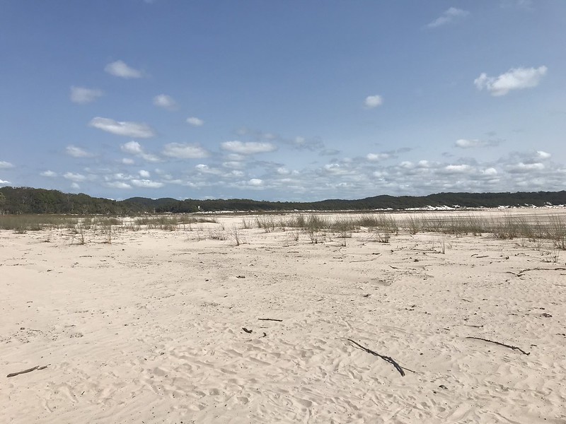 There are about 100-200 dingoes (wongari) on K’gari and they form the apex predator role on the island ensuring other species of animals do not overpopulate. Due to the isolation on the island they are considered the most pure breed of Dingo. With increased visitors to the island there has been a number of incidents – hence the need to carry sticks – but luckily we just saw some in the distance and we passed each other like ships in the night.
