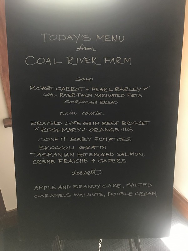 On the way back to Hobart we took a detour across the Derwent River towards Cambridge and the west bank of the Coal River. It was here back in the early 1800s that British settlers expanded out from Hobart to farm the land and is named after coal was discovered shortly afterwards. We had lunch at the Coal River Farm – that produces some amazing, chocolate, cheese and strawberries in a picturesque slope overlooking the river below. We had tasted some of their produce at Salamanca Market.