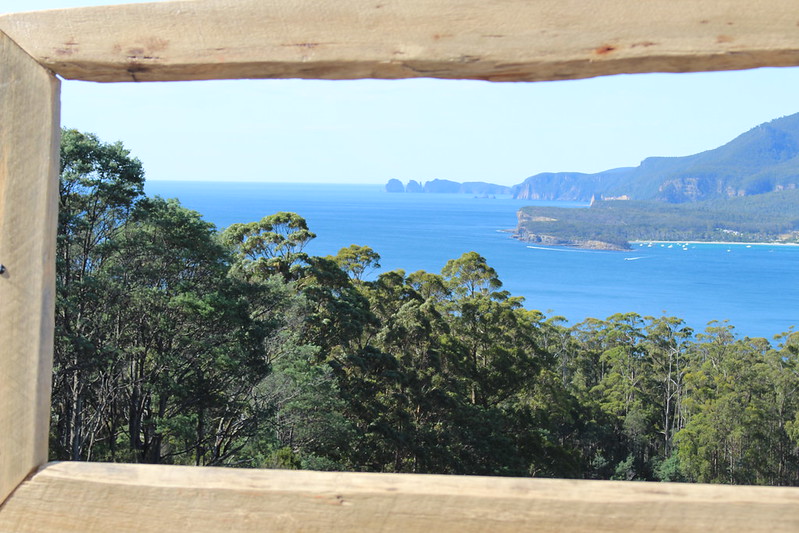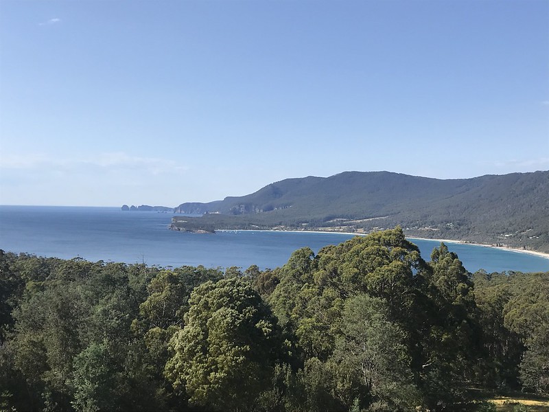 The first part of our journey was Northeast from the city before taking a big right turn and hurtling down to the Tasman peninsula before we stopped for a photo at the Tasman Bay National Park lookout just north of Eaglehawk Neck. From here we had a great vantage of Pirates Bay and the top of the National Park. We were also able to buy a coffee from a coffee van.