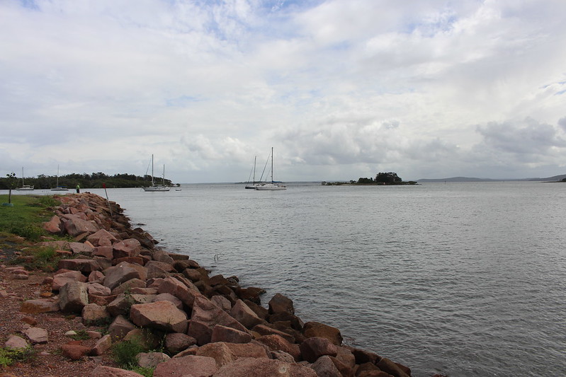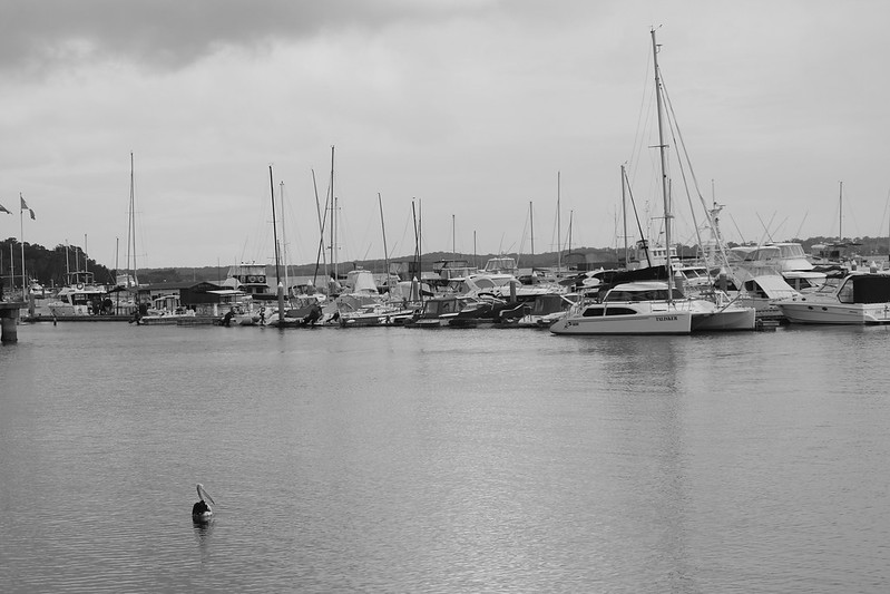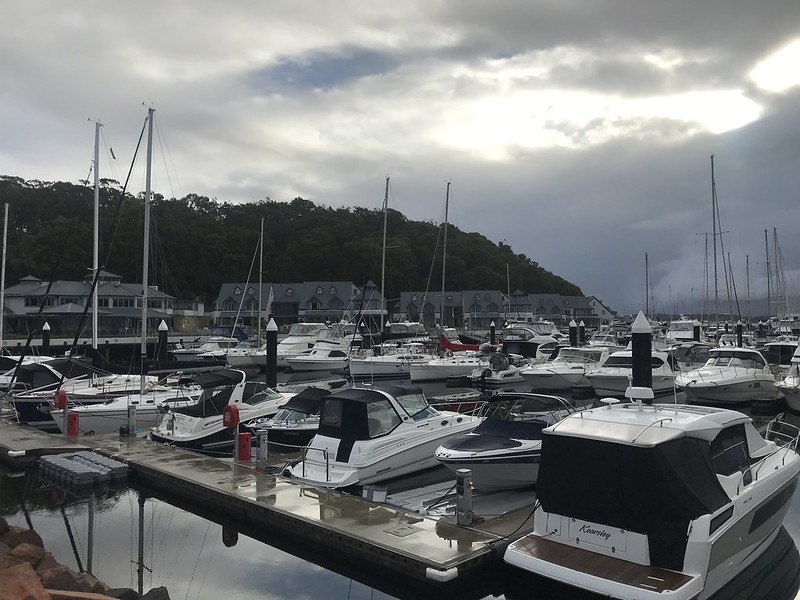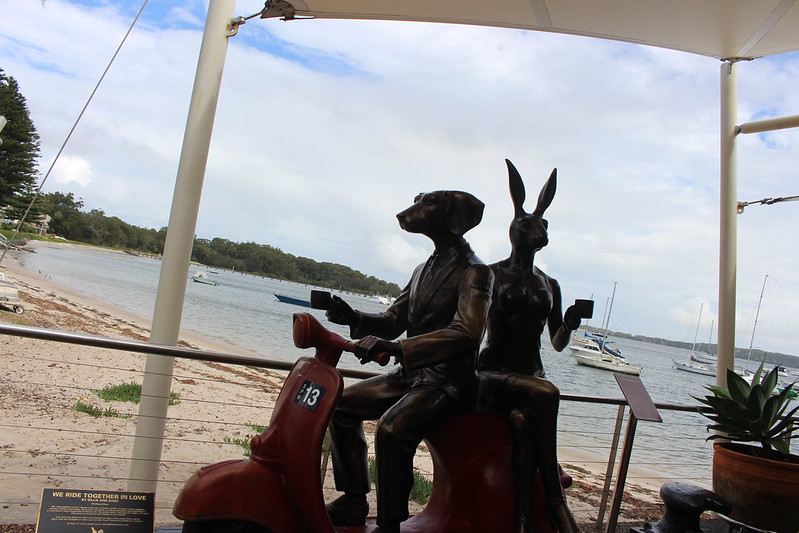 We had slightly better weather over the other side of the peninsula at Soldier’s Point. Here there is a marina with even more yachts and and one of Gillie and Marc’s statues of Dogman and Rabbitwoman on a moped. Its a nice little seaside village and a far cry from its origins as a garrison tasked with the hunting down of escaped convicts in 1820. The area was a haven for escapees from Sydney including five who had commandeered a boat from Parramatta and shipwrecked there. They were welcomed into the Worimi tribe.
