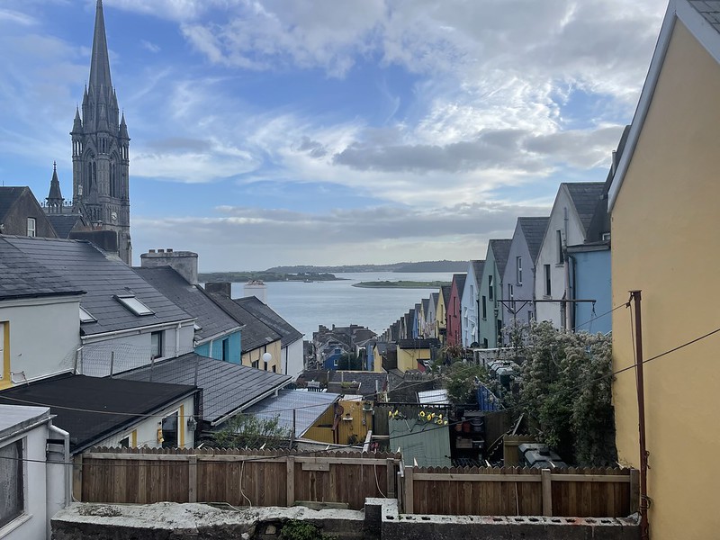 After returning from the United States of America, the McCourt family arrive in Cobh (Queenstown). After disembarking the ship and leaving the docks they climb the hill between Pearse Square and Lower Midleton Street, next to the ‘Deck of Cards’ Houses which look rather drab in the movie compared to the kaleidoscope of colours they rock today.