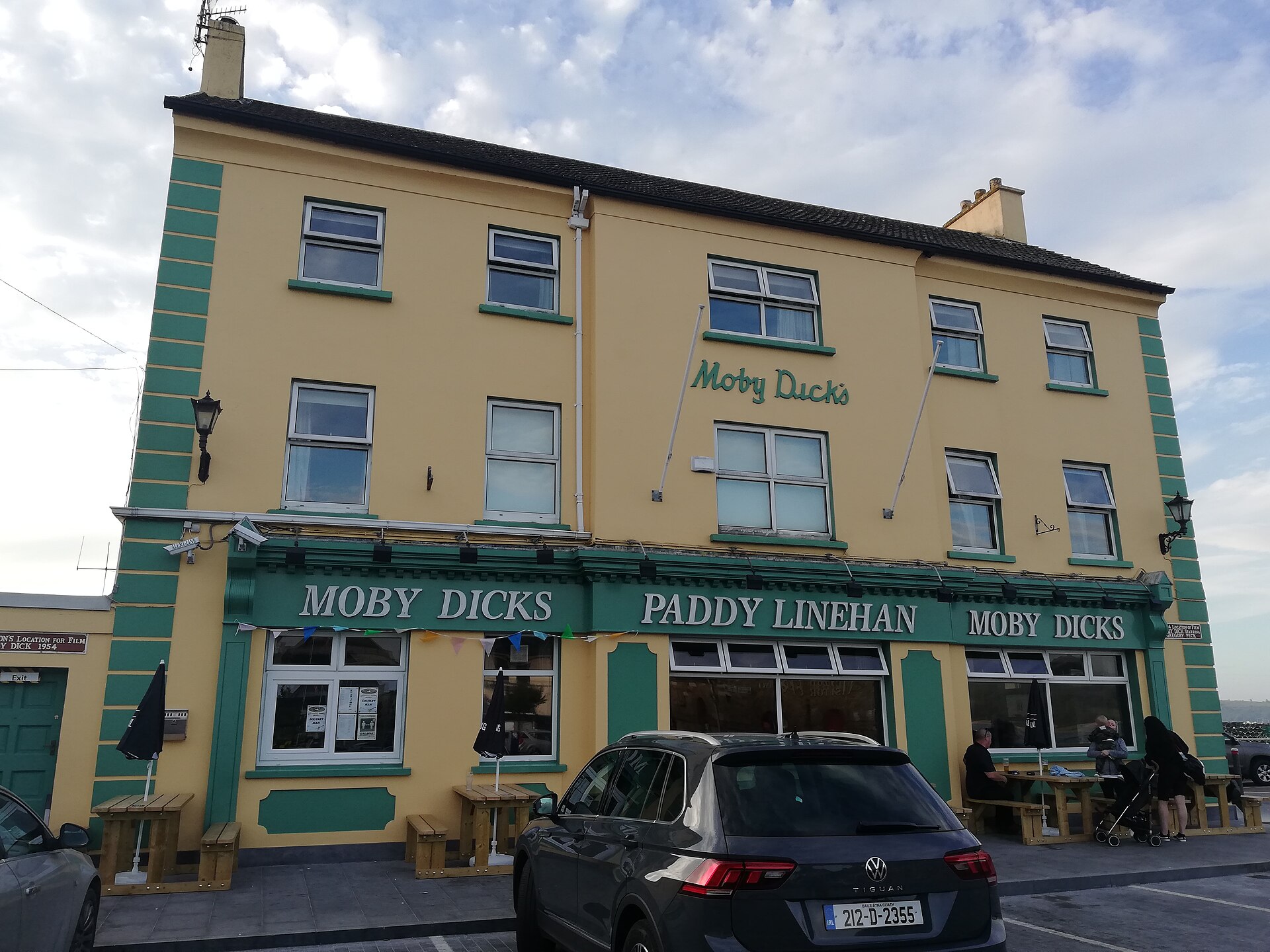 Youghal was a stand in for the town of New Bedford. Some of the exterior shots were done at Paddy Linehan’s bar in the town. After the movie wrapped its filming it was renamed to Moby Dick’s in honour of what had been achieved with the movie. It is still owne by the Linehan family today and contains a number of photographs and even Gregory Pecks prop whalebone leg which he gifted the pub.