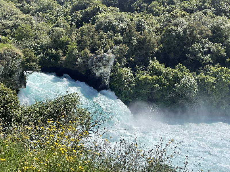 Located on the outskirts of Taupo are the Huka Falls. Thousands of litres of water is released upstream every day and it all flows down a narrow river creating a wild torrent of water. It was here that Peter Jackson filmed some of the barrel sequence from the second Hobbit movie, The Desolation of Smaug. This is where Bilbo and the dwarves escape the elves of Mirkwood by throwing themselves into wine barrels and into the river. Additional footage was captured in the South Island at Pelorus Bridge which we drove over on our way to Able Tasman National Park on a previous trip.