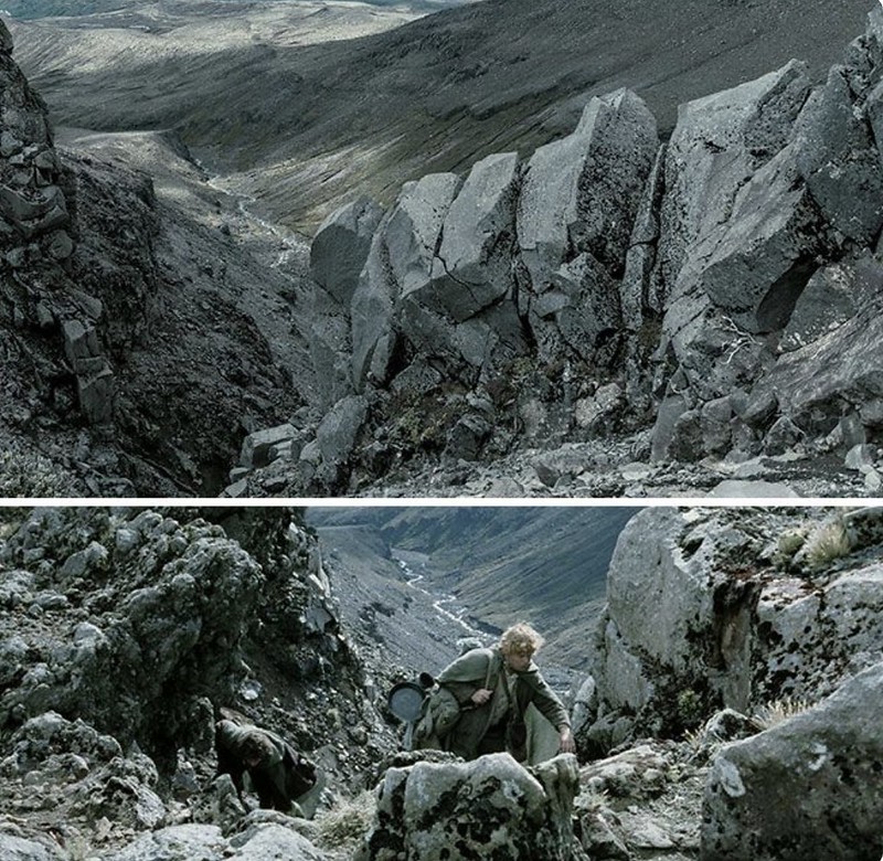 Here is some footage of later scenes in the Return of the King filmed here – where Sam and Frodo are dressed as orcs in order to bypass the armies of Sauron and reach Mount Doom. The barren landscape of this region on full display.