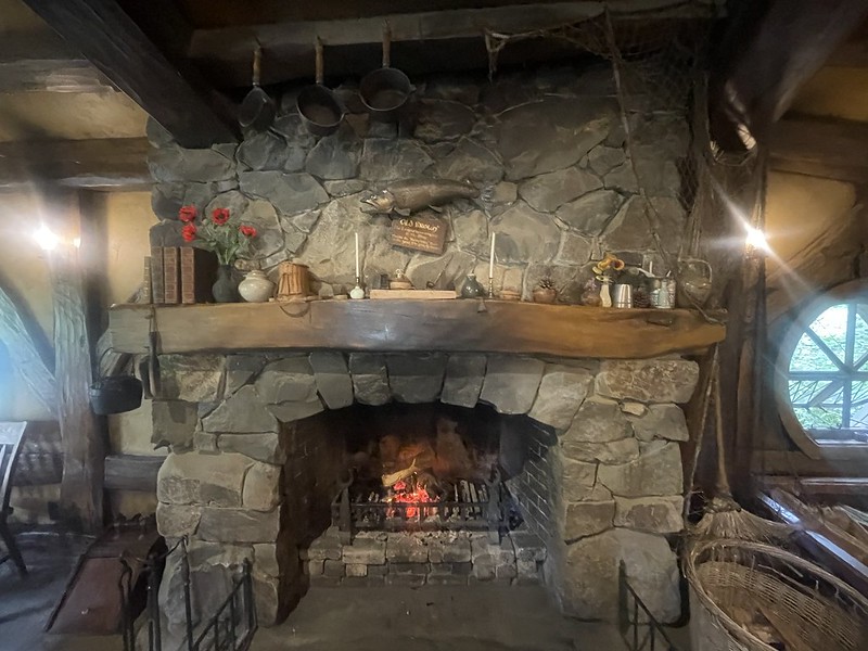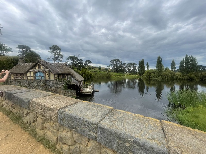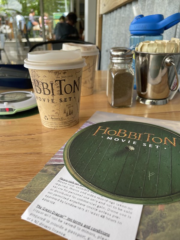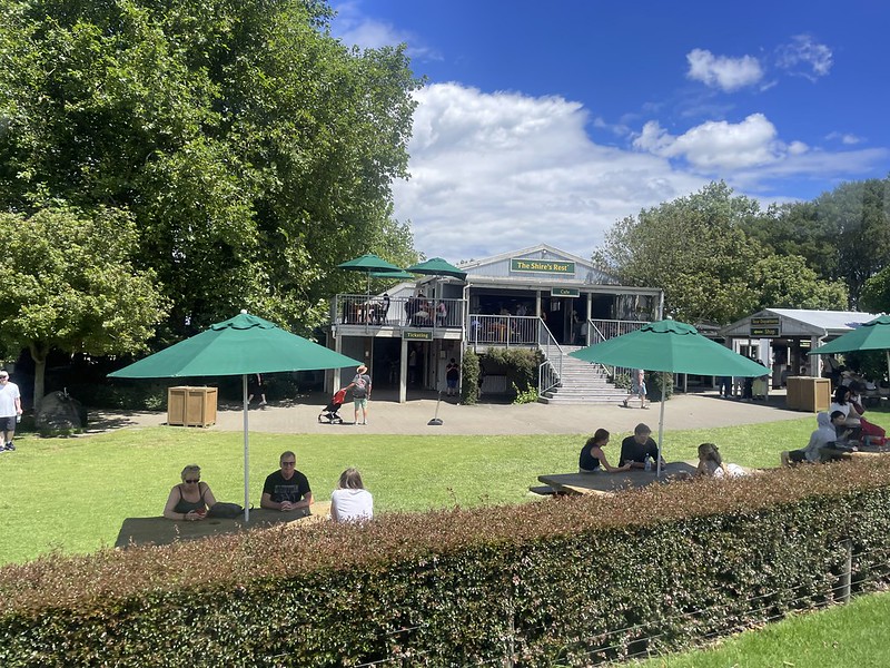 After Bagshot Row we walked down past the Mill and over ‘that stone bridge’ across the Bywater River to arrive at the famous Green Dragon Inn and a refreshing drink of ale (or cider) straight from an authentic movie mug. It also has a fully functioning kitchen but we did not have much time to eat so we just enjoyed our drinks by the lake side.