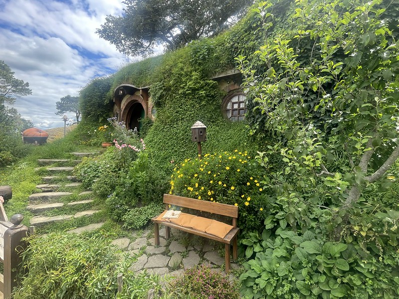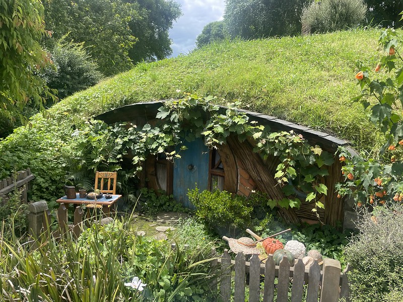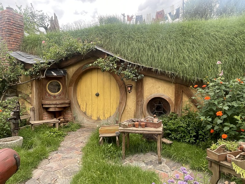 We were dropped off next to the point where Gandalf’s arrival at the start of The Lord of the Rings: The Fellowship of the Ring (2001) movie. A little further on is the spot where Bilbo Baggins (played by Martin Freeman) shouts “I’m going on an adventure in The Hobbit: An Unexpected Journey (2012). Beyond that the view widens to take in the whole of Hobbiton -a large hill with dozens of hobbit holes carved into them and all manner of small details to give each hole its own personality.
