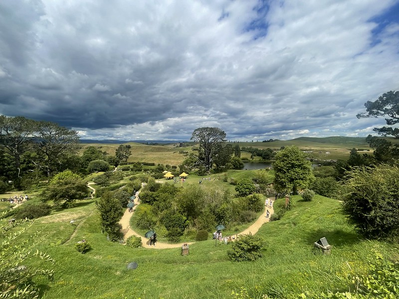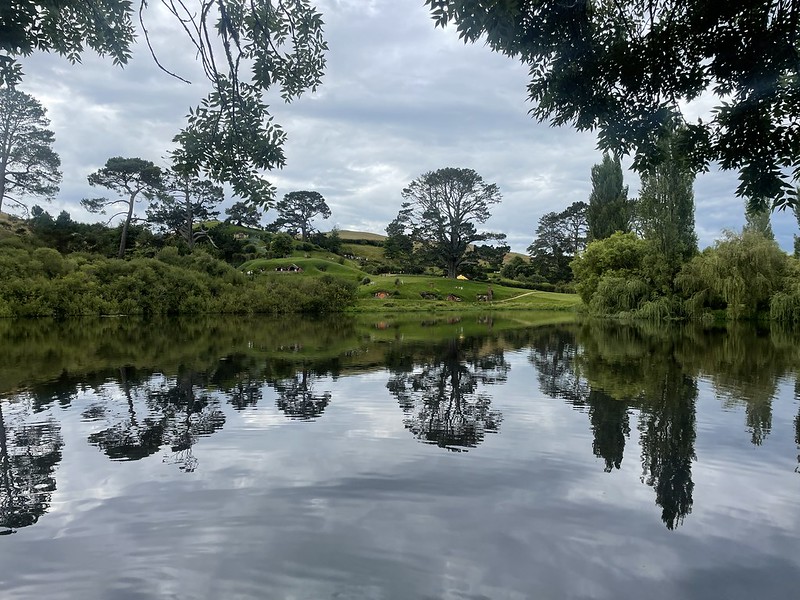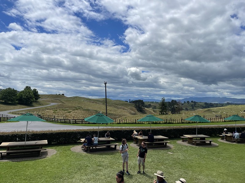 In 1998, one of Peter Jackson’s location scouts was flying around the North Island in a helicopter. His mission was to find the perfect spot to recreate the Shire- the home of Bilbo, Frodo and the rest of the Hobbits. Their search led them to Matamata and Alexander Farm – a 1,250 acre sheep farm. Rolling green hills and pastures and an enormous pine tree adjacent to a rising hill and next to a lake – just as described by Tolkien himself – they had found the Party Tree. This must be the place.