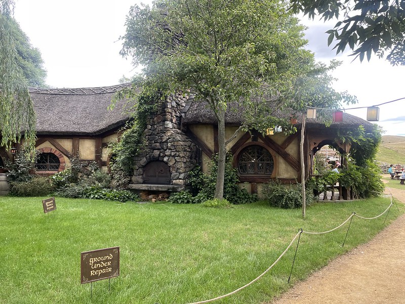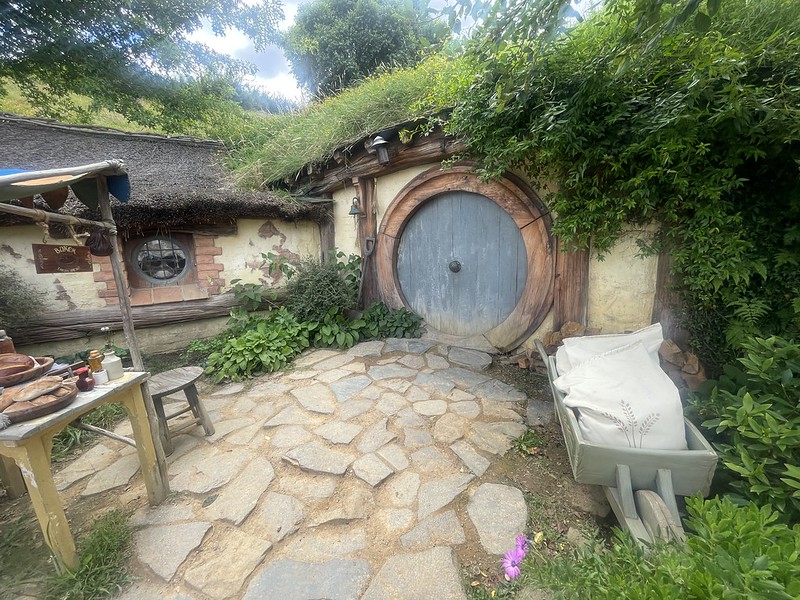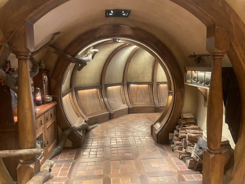 Only two months earlier, the management had opened a new exhibition. Life size working replicas of hobbit holes. You can walk through and discover them. They actually made two to help with crowd congestion and this was called Bag Shot Row. There is actually three hobbit holes, the one with the yellow door belongs to Samwise Gamgee and his family.