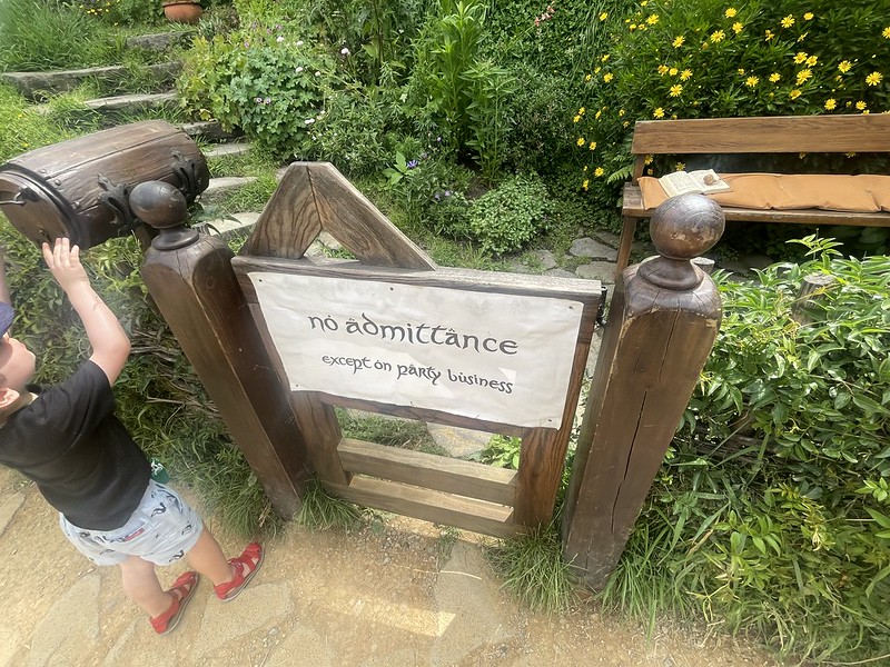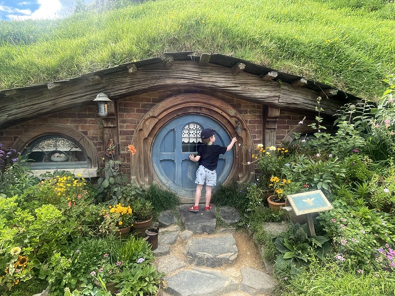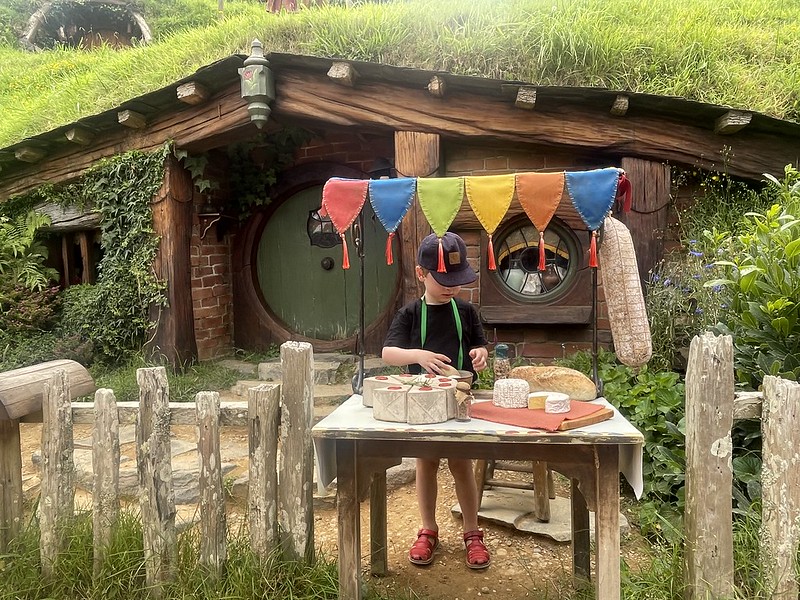 After discovering a number of the hobbit holes we stated to climb up to Bag End – the home of Bilbo and Frodo Baggins. It also allowed us to take in the whole area as we looked down onto the Party field and Party Tree and the lake beyond. It was great having our three year old assistant with us to help take photographs and he was the perfect scale as well.