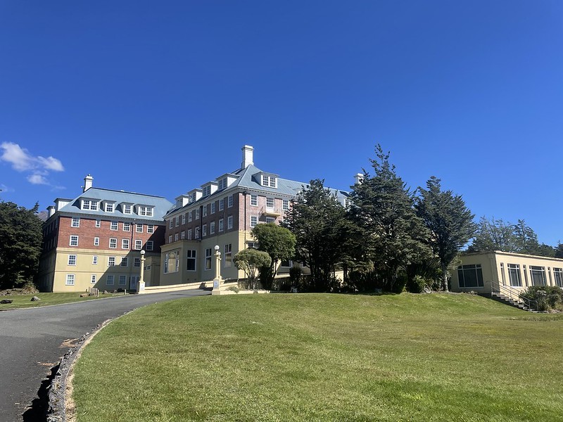 At the bottom of the mountain next to the visitor centre is the Chateau Tongariro Hotel. Temporarily closed at the moment but back in 1999 it was used to host Peter Jackson and his cast and crew while they filmed in the region. It’s a large 1920s building with butterscotch brick and royal blue and has a swimming pool and indoor movie theatre – perfect for watching the dailies.