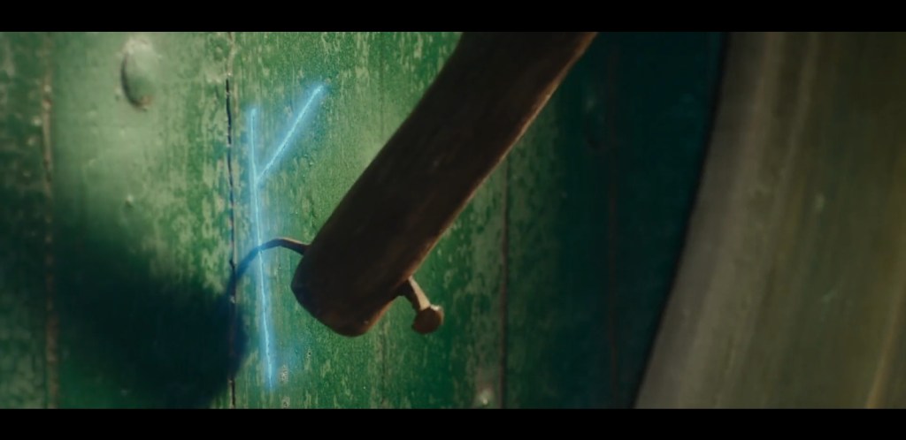 A quick look on the doorframe did not elucidate the dwarven rune tattoo that is left on it by Gandalf in The Hobbit. In the movie it is the Norse ‘Rune of Frey’ (as pictured here). In the addendum of the books it looks a little different. Either way it was not present.