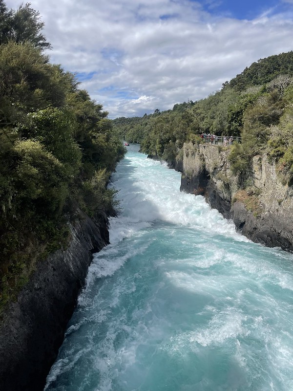 Located on the outskirts of Taupo are the Huka Falls. Thousands of litres of water is released upstream every day and it all flows down a narrow river creating a wild torrent of water. It was here that Peter Jackson filmed some of the barrel sequence from the second Hobbit movie, The Desolation of Smaug. This is where Bilbo and the dwarves escape the elves of Mirkwood by throwing themselves into wine barrels and into the river. Additional footage was captured in the South Island at Pelorus Bridge which we drove over on our way to Able Tasman National Park on a previous trip.