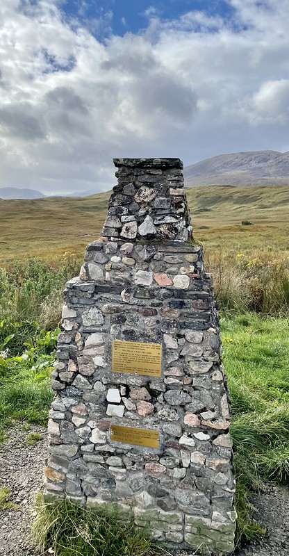 Next to the parking bays is a stone cairn known as the Mountaineers Memorial. It is dedicated to the hundreds of mountaineers who have lost their lives climbing Scotland’s mountains. It is also specifically dedicated to Sir Henry T Munro who published the “Munro Tables” a meticulous study of all mountains over 3,000 ft. That is why you will see mountain summits and peaks over that height referred to as Munros and Munro Tops.