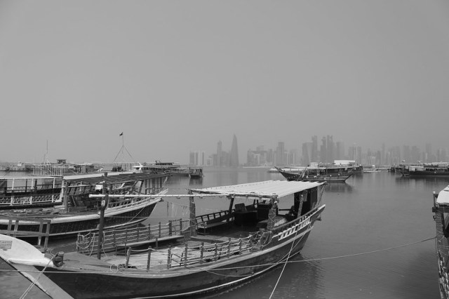 The post features a collection of photos showcasing the Corniche, a scenic sea promenade in Doha, Qatar. The images predominantly highlight traditional wooden barges, known as dhows, reflecting the maritime heritage and cultural significance of the region.