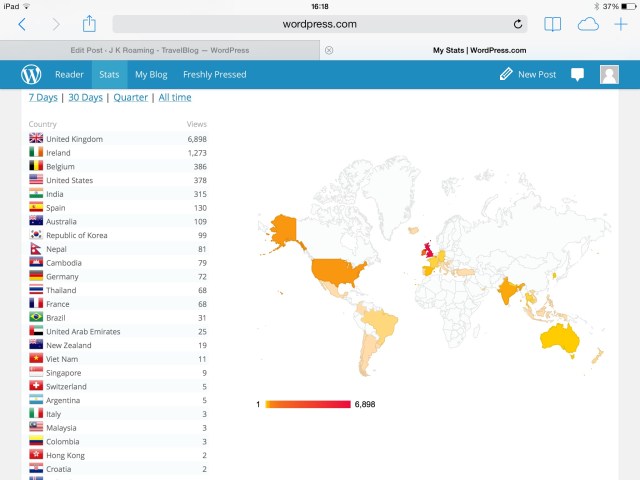 During the last few days our blog has hit 10000 views so now would be a good time to crunch the numbers and see what trends we have seen on our trip so far. Travel So far we have been travelling for over 2 months or to be precise 66 days and 19 hours and […]