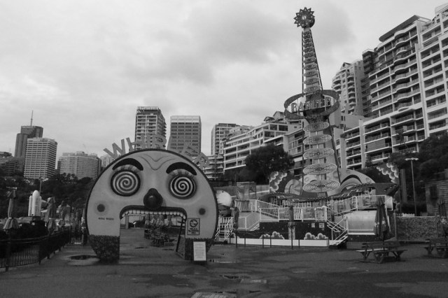 Pictures taken on a rainy Sunday morning at Luna Park in Milson’s Point in Sydney. What should be a bright colourful place looks a little scary in Monochrome.
